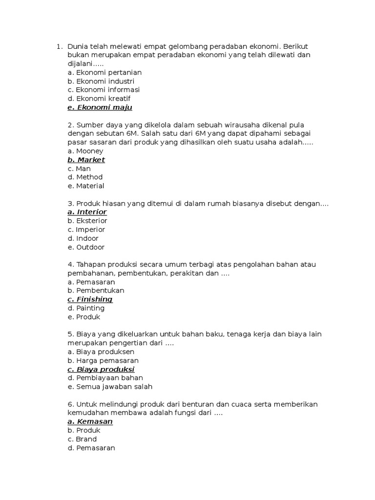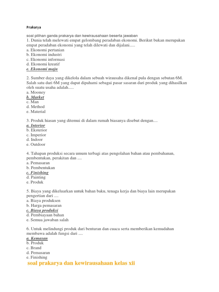 Soal Pilihan Ganda Prakarya Dan Kewirausahaan Beserta Otosection